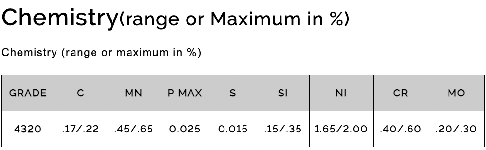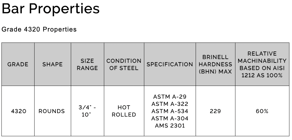 SPECIFICATIONS: GRADE ALLOY 4320, AISI 4320, UNS G43200