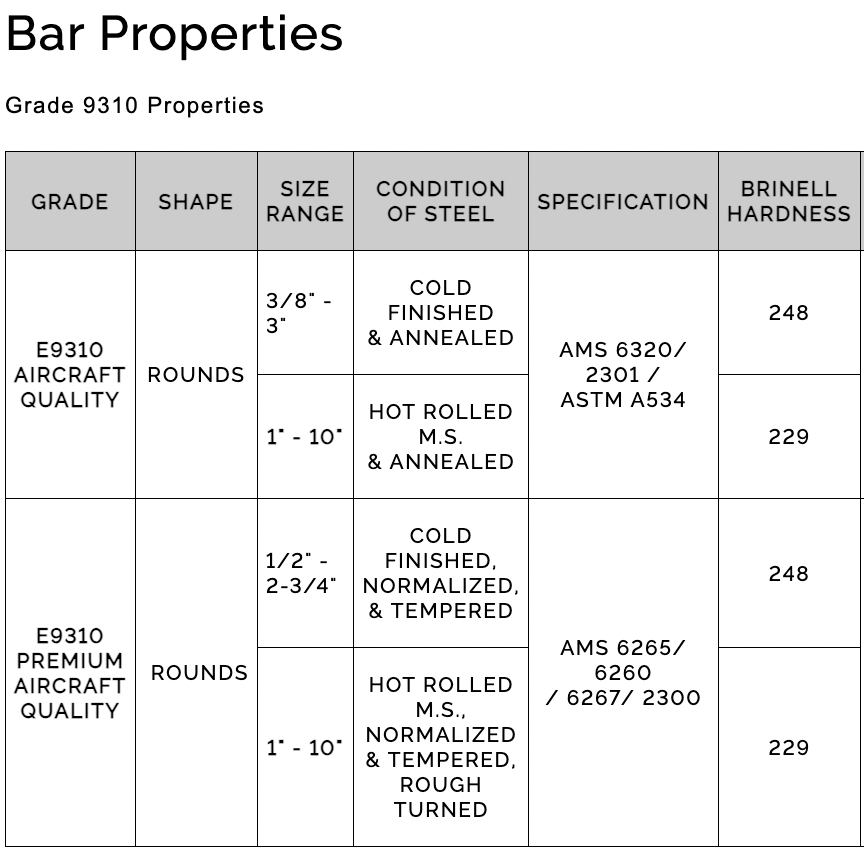 Alloy 9310 is also available in Premium Aircraft Quality. E9310 Premium Aircraft Quality is vacuum arc Remelted, resulting in the highest quality, cleanliness and reliability.