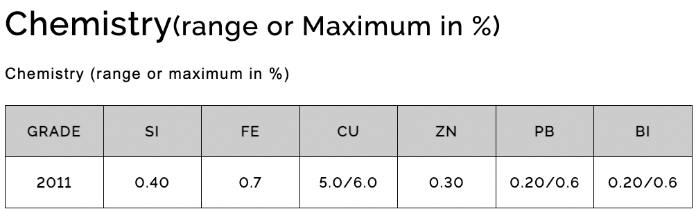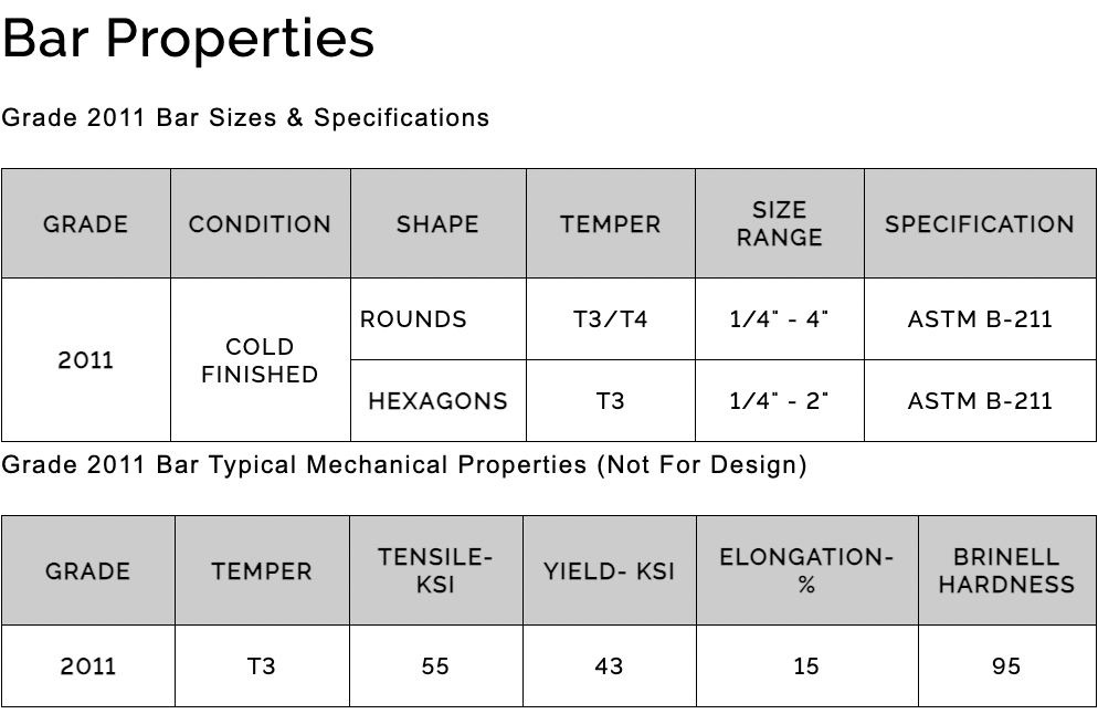 SPECIFICATIONS: GRADE ALUMINUM 2011, UNS A92011