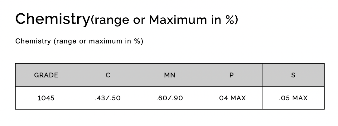 SPECIFICATIONS: GRADE CARBON 1045, AISI 1045, UNS G10450