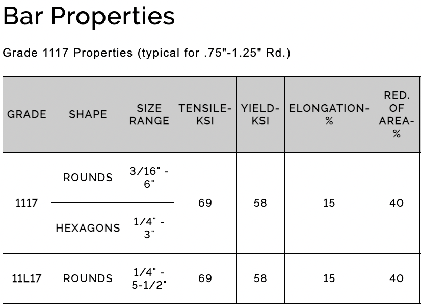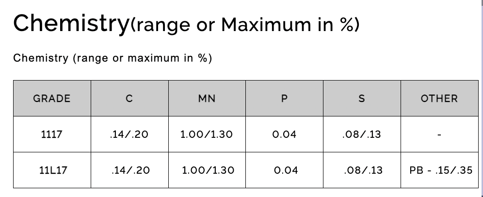SPECIFICATIONS: GRADE CARBON 1117, AISI 1117, UNS G11170