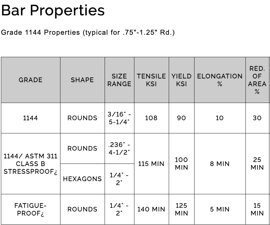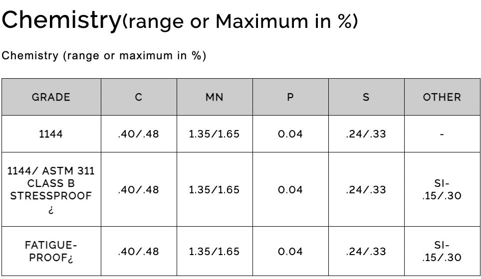 SPECIFICATIONS: GRADE CARBON 1144, AISI 1144, UNS G11440