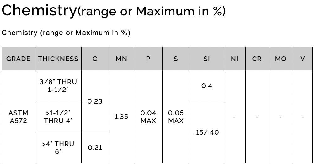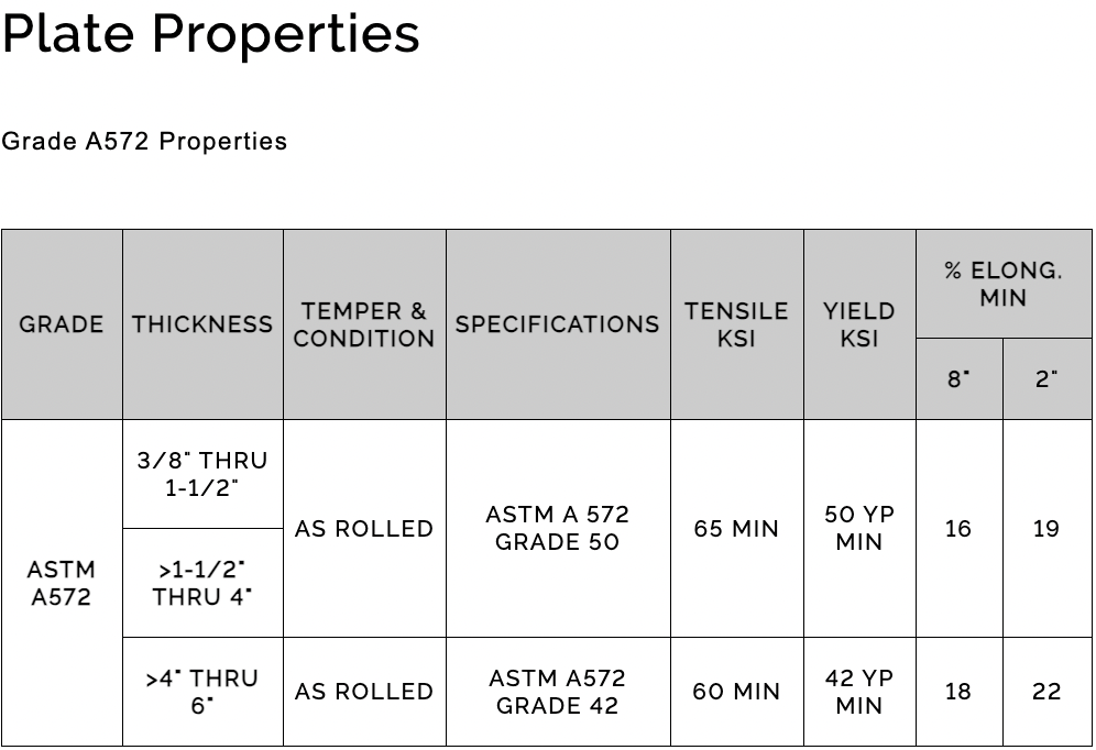 Carbon A572 (ASTM A572) is a low alloy, high strength steel, popular for its strength. With a better strength to weight ratio, A572 steel is a natural step up from A36 when more strength is needed. The increased strength of A572 plate does not compromise the steels ductility and weldability. A572 plate can therefore be formed, welded, and machined.