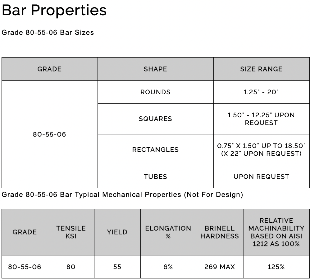 Castle Metals stocks a wide range of grade 80-55-06 in bar and tube. In addition to the U.S. and Canada, we warehouse inventory in Mexico, U.K, France, Singapore, and Shanghai. Customers calling us for grade 80-55-06 a lot of times are frustrated by production problems. So they also ask if Castle can process and or fabricate parts to their exact specification. Anything that helps you focus on your core business is usually something that Castle Metals would like to help you achieve, so we should talk about it.