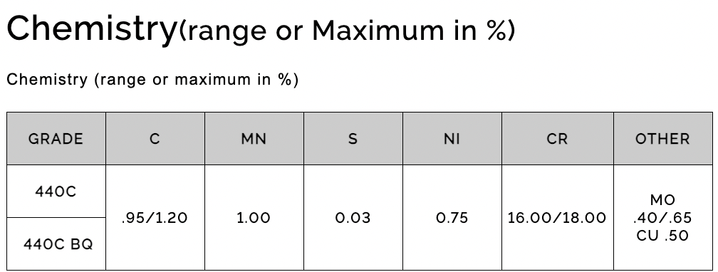 SPECIFICATIONS: GRADE STAINLESS STEEL 440C, AISI 440C, UNS S44004
